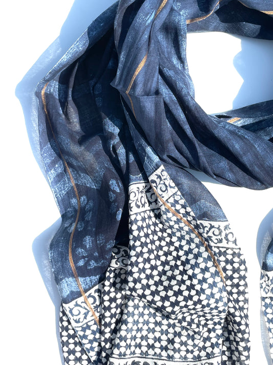 Japanese Tie Dye Scarf | Indigo Blue + Olive + White Cosmos