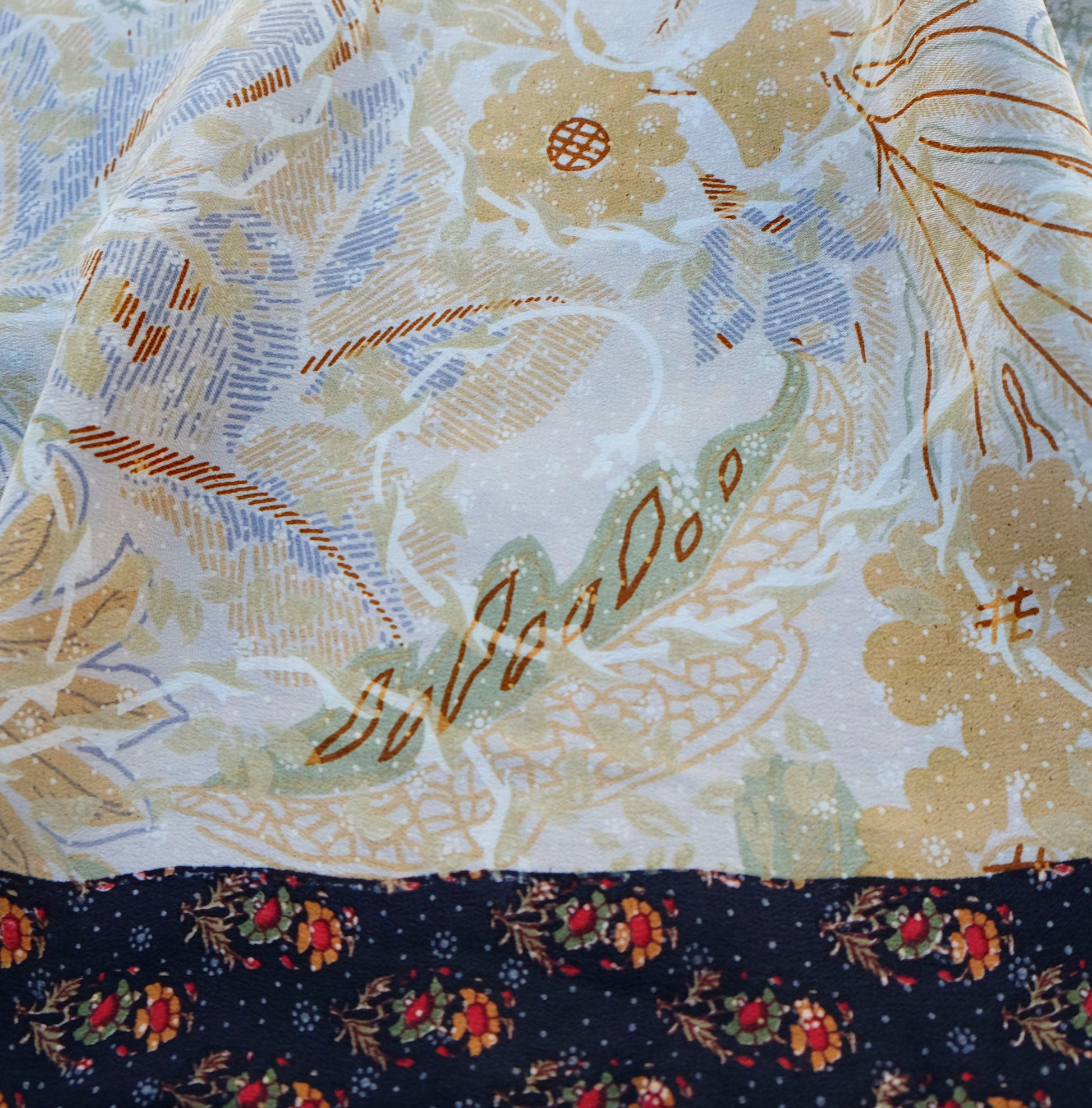This gorgeous Amaya stoles collection is made with pure light chiffon silk and crepe silk carefully hand stitched in two different layers of printed fabric. Each print has multiple layers of printed design and texture which makes them very unique and one of a kind. This print features the delicate wild floral print layered with traditional mughal print. The double layered prints make these stoles very versatile to dress up for all seasons.