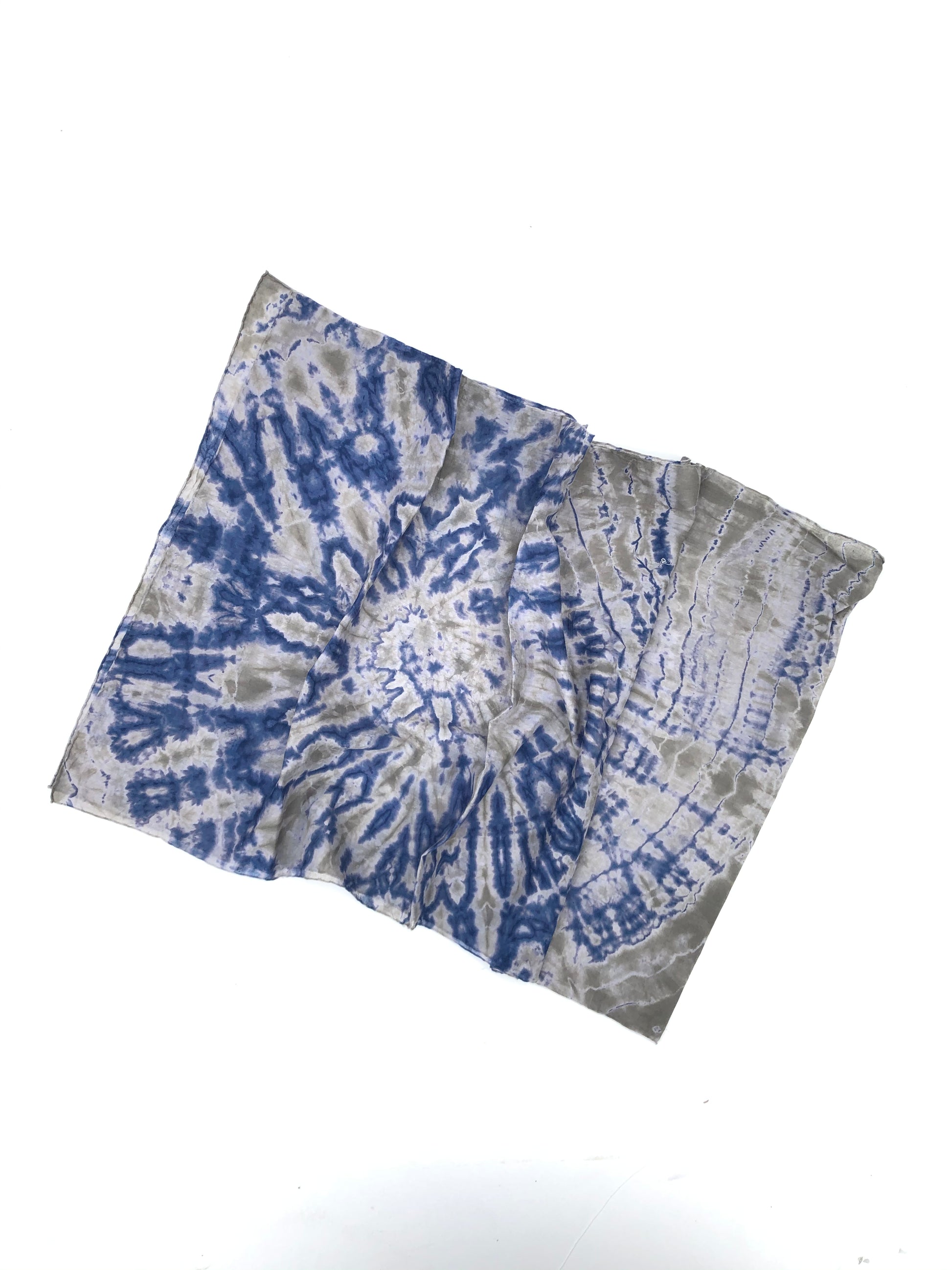 Some of our summer best sellers. Japanese tie-dye hand dyed on organic cotton silk handloom textile. These pair great with a simple monochrome dress, a fun jumper or simply pair it with t-shirt and jeans. Wear it on the beach, on a swimsuit as a cover up, or wrap it around your neck on cooler days. Make it a beautiful wallhanging, or if you want to go all the way—frame it as art.